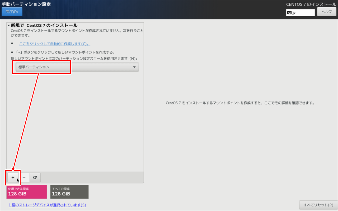 [標準パーティション]を選択し、[+] をクリックします。 |