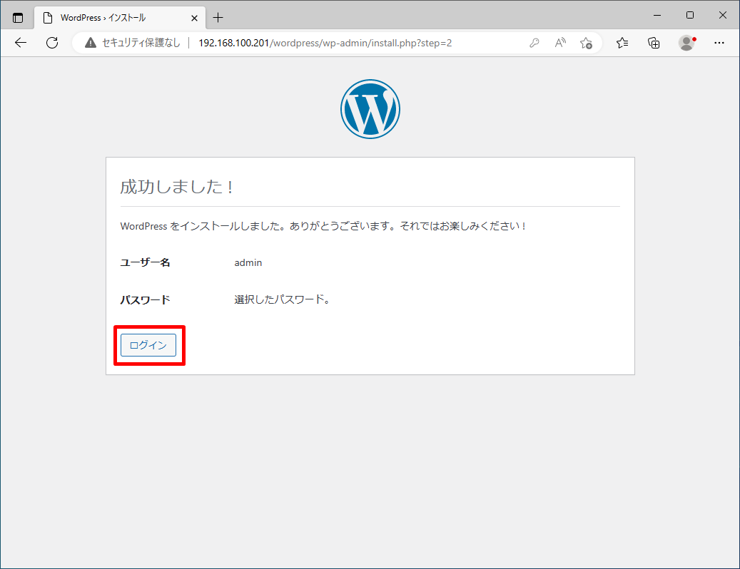 Archive: latest-ja.zip creating: /var/www/wordpress/ inflating: /var/www/wordpress/wp-login.php inflating: /var/www/wordpress/wp-cron.php inflating: /var/www/wordpress/xmlrpc.php inflating: /var/www/wordpress/wp-load.php creating: /var/www/wordpress/wp-admin/ ・・・・・・ inflating: /var/www/wordpress/wp-includes/class-walker-comment.php inflating: /var/www/wordpress/wp-includes/nav-menu.php inflating: /var/www/wordpress/wp-includes/class.wp-dependencies.php inflating: /var/www/wordpress/wp-signup.php inflating: /var/www/wordpress/wp-links-opml.php