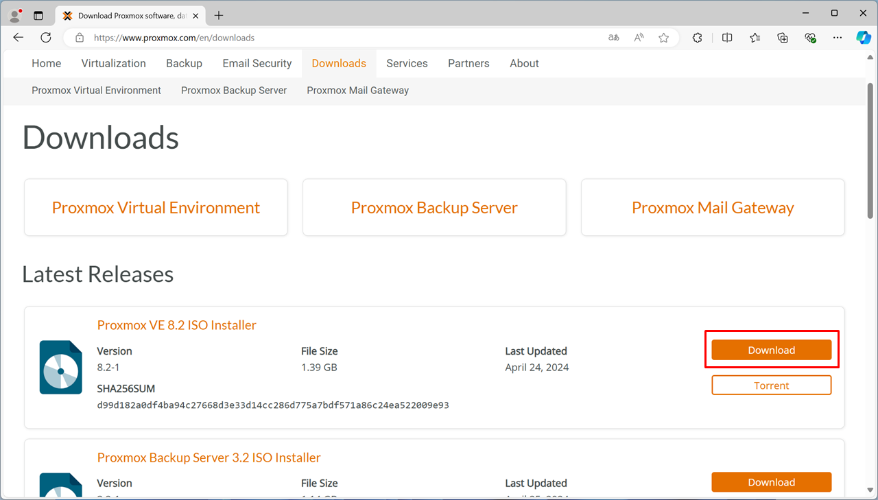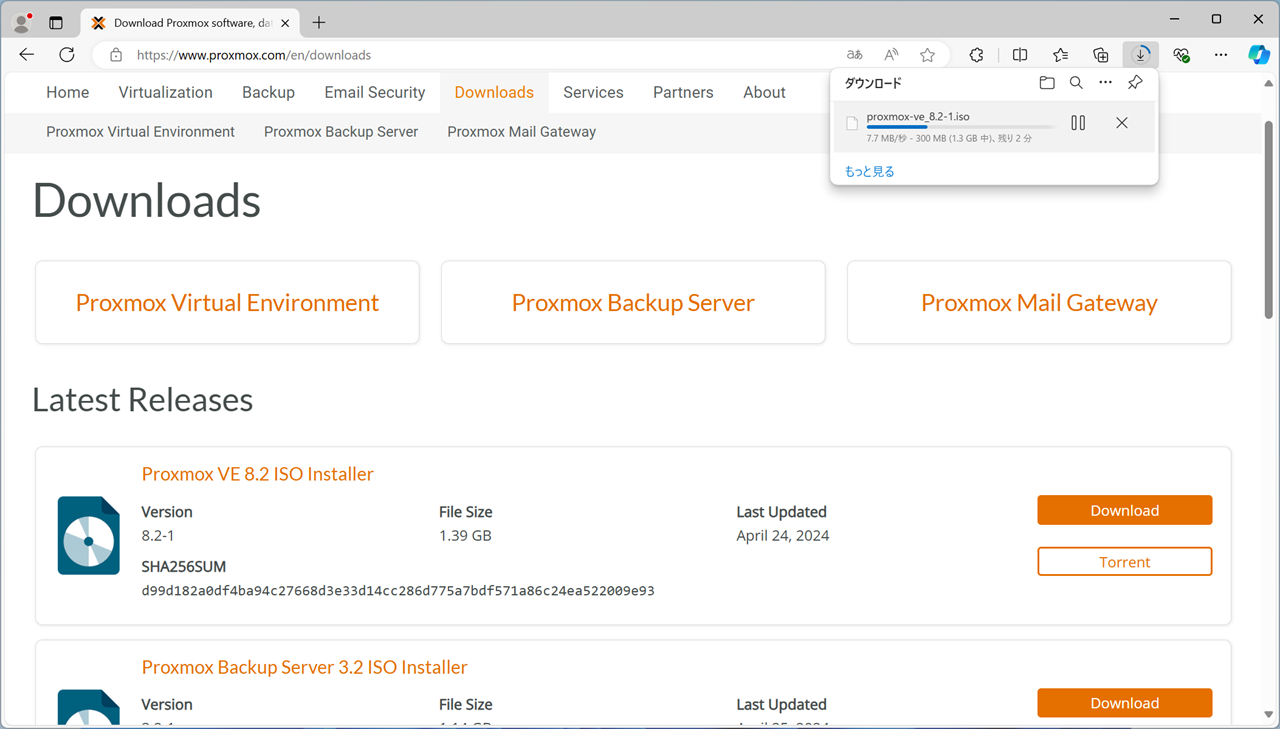 ここでは、Proxmox 8のインストールディスクイメージをダウンロードする手順を掲載しています。